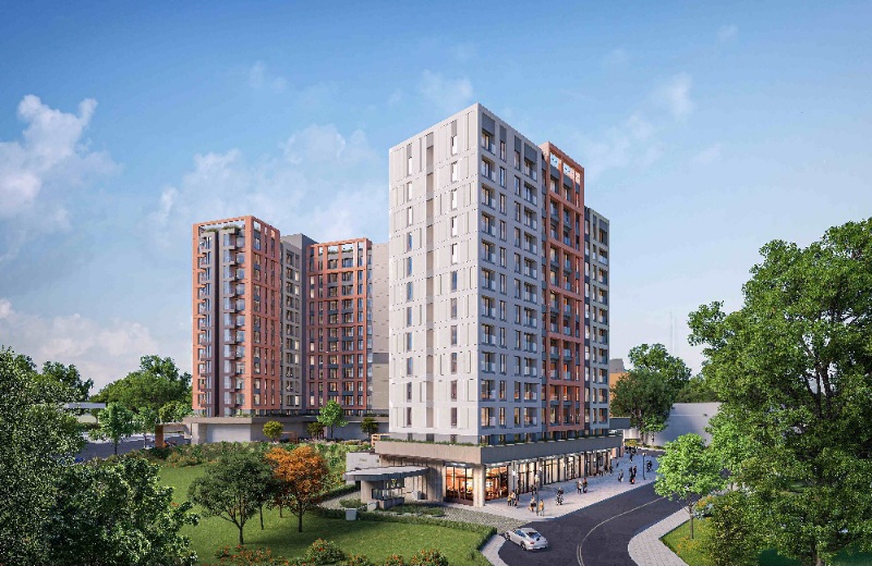 5 bin 500 metrekare arsa üzerinde 13 katlı iki blok halinde tasarlanan projede, 256 bağımsız bölümden oluşan konut ve ofisin yanında cadde mağazaları da yer alıyor.
