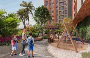 5 bin 500 metrekare arsa üzerinde 13 katlı iki blok halinde tasarlanan projede, 256 bağımsız bölümden oluşan konut ve ofisin yanında cadde mağazaları da yer alıyor.