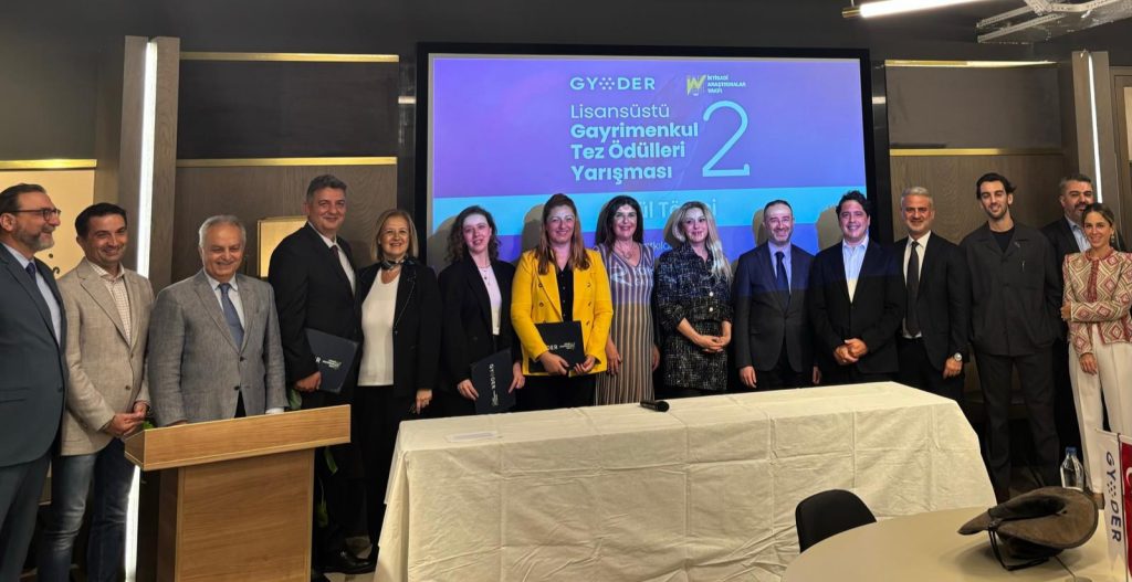 Türkiye gayrimenkul sektörünün çatı kuruluşu GYODER ve İktisadi Araştırmalar Vakfı (İAV) iş birliği ile bu yıl ikincisi düzenlenen ‘Lisansüstü Gayrimenkul Tez Ödülleri Yarışması’nın kazananları belli oldu. Yarışmada dereceye giren öğrenciler 9 Ekim’de İstanbul’da gerçekleştirilen törenle ödüllerini aldı. Türkiye gayrimenkul sektörünün gelişimine yön vermek amacıyla akademik çalışmalara ve eğitim programlarına destek vermeyi ilke edinen GYODER, İstanbul Üniversitesi İşletme İktisadı Enstitüsü ile imzaladığı iş birliği protokolü ile de gayrimenkul alanında eğitim, araştırma ve profesyonel gelişim faaliyetlerinde daha güçlü bir yapıya imza attı.